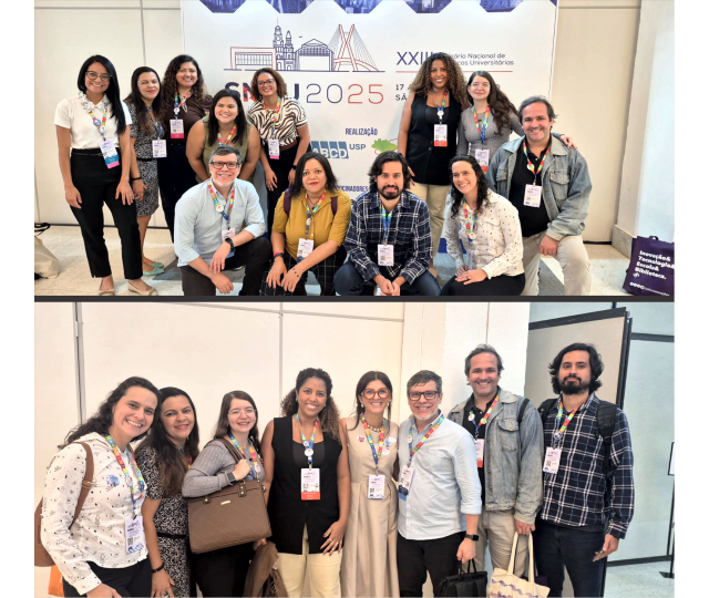 A UERJ também esteve representada pelo diretor Rinaldo Magallon e pelos coordenadores Gabriel Vidal (NUCTIC), Taciane Ferreira (NPROTEC) e Ana Clara Brandão (PLANAD), além de outros bibliotecários da Rede.